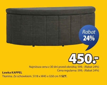 Ławka KAPPEL Tkanina. Ze schowkiem. S118 x W45 x G50 cm 1 SZT.