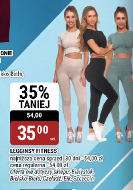 LEGGINSY FITNESS najniższa cena sprzed 30 dni · 54,00 zł Cena regularna - 54,00 zł Oferta nie dotyczy sklepu: Białystok, Bielsko-Biała, Czeladź, Eik, Szczecin
