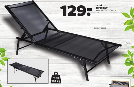 Leżak ogrodowy wym. 181x55x32/94 cm. Maksymalne obciążenie 160 kg.