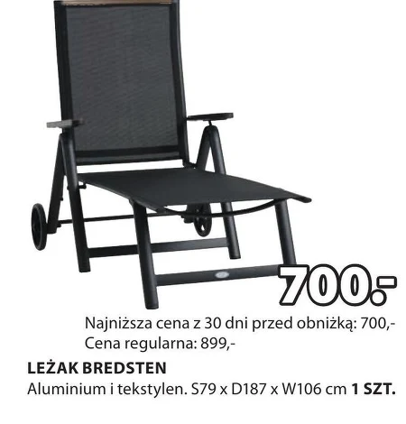 LEŻAK BREDSTEN Aluminium i tekstylen. S79 x D187 x W106 cm 1 SZT.