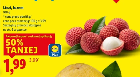Liczi, luzem 100 g * cena przed obniżką/ cena poza promocją: 100 g = 3,99