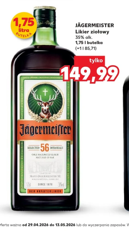 JÄGERMEISTER Likier ziołowy 35% alk. 1,75 l butelka