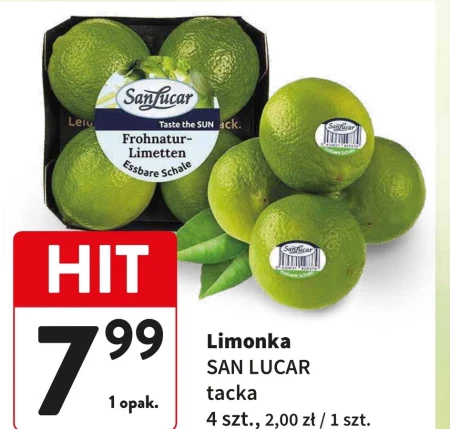 Limonki San Lucas dostępne są w ofercie Intermarche w cenie 7,99 zł za opakowanie. Opakowanie zawiera cztery sztuki, a pojedyncza limonka kosztuje 2,00 zł. Te soczyste owoce są idealne do przygotowania orzeźwiających napojów, sałatek oraz jako dodatek do potraw kuchni meksykańskiej i azjatyckiej. Skorzystaj z okazji i dodaj trochę słonecznego smaku do swojego menu dzięki tym aromatycznym limonkom.
