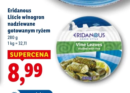 Eridanous Liście winogron nadziewane gotowanym ryżem 280 g 1 kg = 32,11
