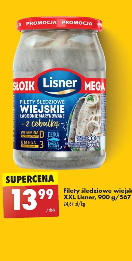 Lisner Filety śledziowe wiejskie łagodnie marynowane z cebulką 900 g - Oferta archiwalna