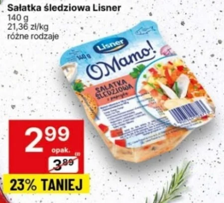 Sałatka śledziowa Lisner 140 g 21,36 zł/kg różne rodzaje