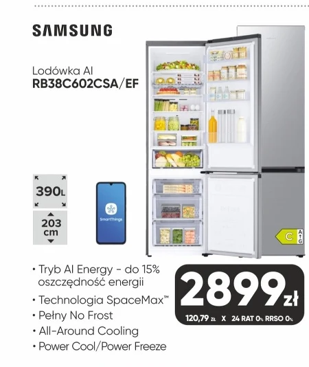 Lodówka AI RB38C602CSA/EF • Tryb AI Energy – do 15% oszczędność energii • Technologia SpaceMax™ • Pełny No Frost • All-Around Cooling • Power Cool/Power Freeze