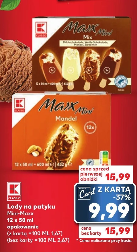 Lody na patyku Mini-Maxx 12 x 50 ml opakowanie.