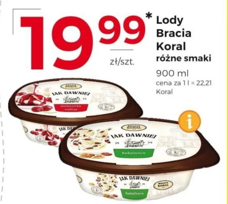 Lody Bracia Koral różne smaki 900 ml cena za 1 l = 22,21 Koral