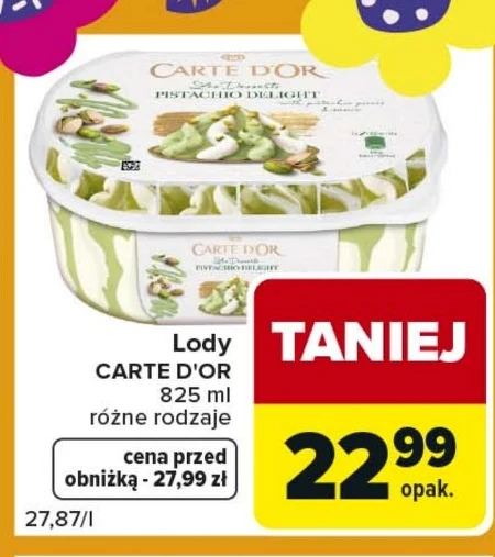 Lody Carte d’Or w Carrefour można teraz kupić za 22,99 zł zamiast 27,99 zł, a opakowanie ma aż 825 ml. Wybierz spośród różnych smaków, od klasycznej wanilii po bardziej oryginalne połączenia. To idealny deser na upalne dni lub słodka przekąska dla całej rodziny. Aktualna promocja w Carrefour to świetna okazja, by zaopatrzyć się w ulubione lody w większym opakowaniu w atrakcyjnej cenie.