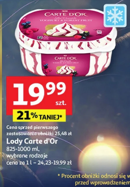 Lody Carte d'Or 825-1000 ml, wybrane rodzaje cena za 1 l - 24,23-19,99 zł
