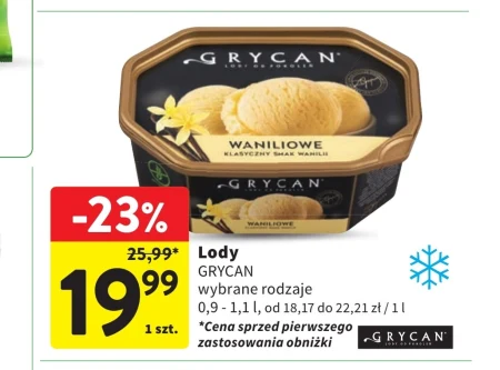 Lody Grycan, wybrane rodzaje, dostępne są w ofercie Intermarche w cenie od 18,17 do 22,21 zł za litr, a opakowania mają pojemność od 0,9 do 1,1 litra. Obecnie można je nabyć za 19,99 zł, co stanowi obniżkę z 25,99 zł. To doskonały deser na upalne dni, idealny do spożycia samodzielnie lub w gronie rodziny i przyjaciół, oferujący orzeźwienie i słodką przyjemność. Warto skorzystać z tej okazji, by zaoszczędzić na ulubionym smaku.