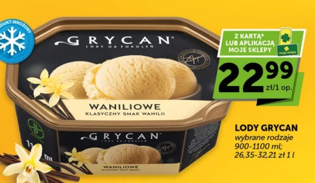 Lody Grycan można nabyć w ofercie moje sklepy w cenie od 26,35 zł do 32,21 zł za litr, opakowanie kosztuje 2,99 zł. Dostępne są wybrane rodzaje lodów w opakowaniach o pojemności od 900 do 1100 ml. To idealna propozycja na słodki deser w upalne dni, doskonała zarówno dla dzieci, jak i dorosłych. Wybierz swój ulubiony smak i ciesz się chwilą przyjemności, ten produkt z pewnością umili każdy dzień. Skorzystaj z tej okazji, aby zaopatrzyć się w ulubione lody w atrakcyjnej cenie. Oferta ważna od 2026-04-09 do 2026-04-15 Źródło: gazetka moje sklepy
