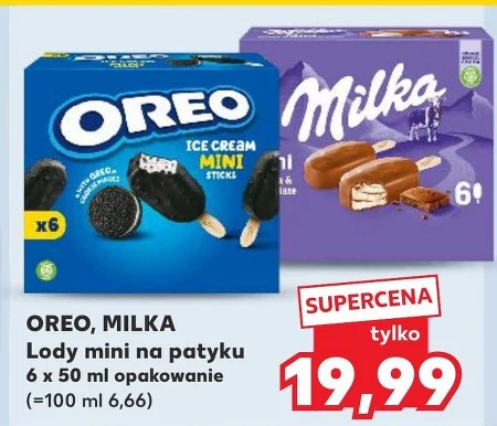 OREO, MILKA Lody mini na patyku 6 x 50 ml opakowanie (=100 ml 6,66)