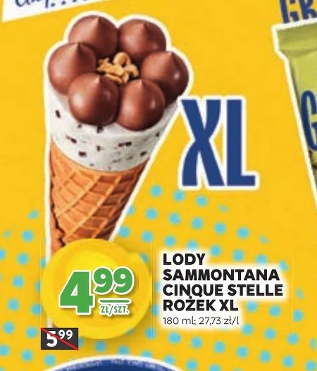 LODY SAMMONTANA CINQUE STELLE ROŽEK XL 180 ml; 27,73 zł/l Niepowtarzalny smak lodów Sammontana Cinque Stelle doskonale orzeźwia w gorące dni, idealny na słodką przekąskę lub deser po posiłku. Wspaniale komponuje się jako dodatek do owocowych koktajli lub domowych wypieków, zapewniając wyjątkowy smak każdemu daniu.