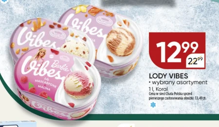 LODY VIBES · wybrany asortyment 1 l, Koral Cena w sieci Chata Polska sprzed pierwszego zastosowania obniżki: 13,49 zł.