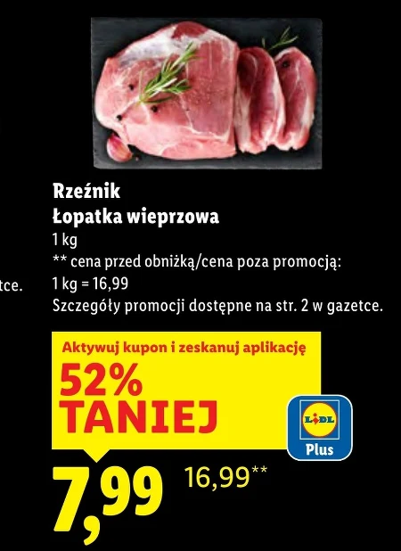 Rzeźnik Łopatka wieprzowa 1 kg ** cena przed obniżką/cena poza promocją: 1 kg = 16,99