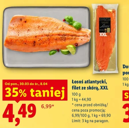 Łosoś atlantycki w postaci dużego filetu ze skórą można teraz znaleźć w ofercie Lidl w cenie 4,49 za 100 gramów, co stanowi obniżkę o 35% z ceny 6,99. Doskonały wybór dla miłośników zdrowego odżywiania, ten wysokiej jakości łosoś idealnie nadaje się do pieczenia, grillowania czy przygotowania wędzonek. Jego delikatne mięso i wyrazisty smak zadowolą nawet najbardziej wymagających smakoszy, a limit zakupu wynoszący 3 kg na paragon pozwala na przygotowanie pysznych posiłków dla całej rodziny przez najbliższe dni – warto skorzystać z tej okazji, która trwa od 30 marca do 8 kwietnia.
