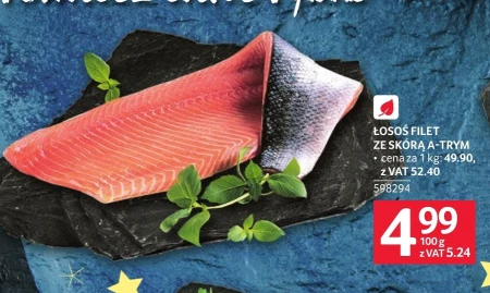 ŁOSOŚ FILET ZE SKÓRĄ A-TRYM · cena za 1 kg: 49.90, z VAT 52.40 598294