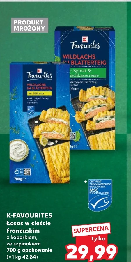K-FAVOURITES Łosoś w cieście francuskim z koperkiem, ze szpinakiem 700 g opakowanie