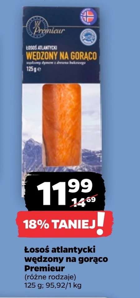 Łosoś atlantycki wędzony na gorąco Premieur (różne rodzaje) 125 g