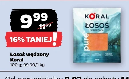 Łosoś wędzony Koral 100 g; 99,90/1 kg