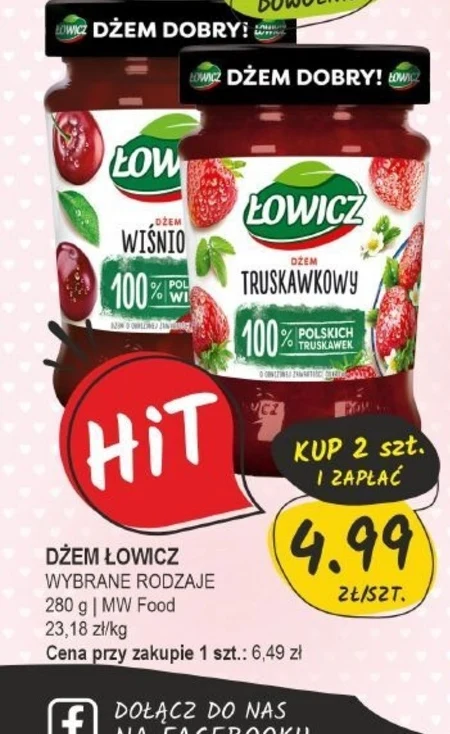 Łowicz Dżem wiśniowy o obniżonej zawartości cukrów 280 g - Oferta archiwalna