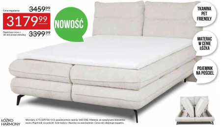 Łóżko Harmony Wymiary 175/229/56-113, powierzchnia spania 160/200. Materac ze sprężynami kieszeniowymi. Pojemnik na pościel. Inne kolory i tkaniny na zamówienie. Cena nie obejmuje toppera.