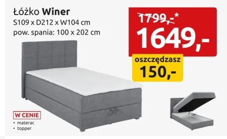 Łóżko Winer S109 x D212 x W104 cm pow. spania: 100 x 202 cm