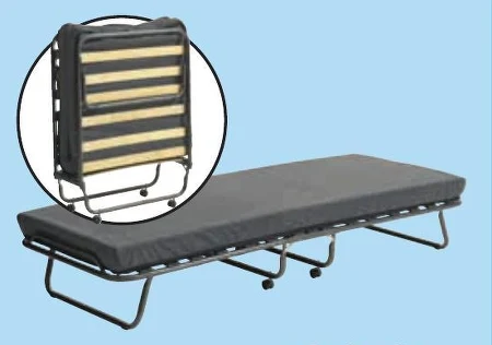 ŁÓŻKO SKŁADANE JESBY Stal. Materac o grubości 8 cm z rdzeniem z pianki poliuretanowej. Z drewnianym stelażem. S80 x G190 x W39 cm 1 SZT. Cena 600 zł.