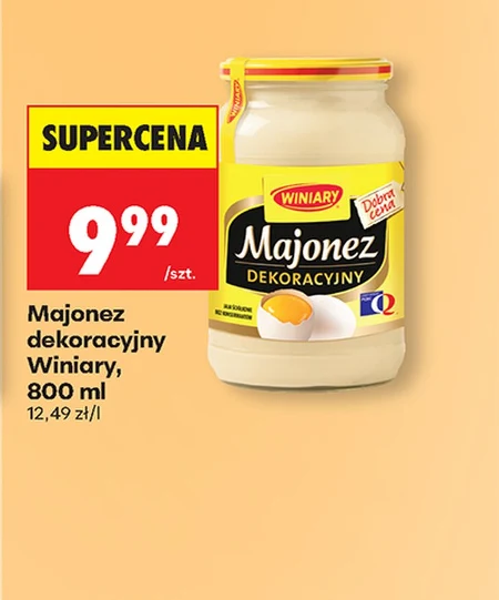 Majonez dekoracyjny Winiary jest dostępny w Biedronce w cenie 9,99 zł za opakowanie 800 ml, co daje 12,49 zł za litr. To klasyczny majonez idealny do przygotowywania kanapek, sałatek, sosów oraz jako dodatek do dań z mięs i warzyw. Sprawdzi się zarówno w kuchni codziennej, jak i podczas specjalnych okazji, a jego dekoracyjny charakter pozwala na estetyczne podanie potraw. Warto skorzystać z tej okazji, ponieważ jest to atrakcyjna oferta na wysokiej jakości produkt. Oferta ważna od 2026-04-13 do 2026-04-18 Źródło: gazetka Biedronka