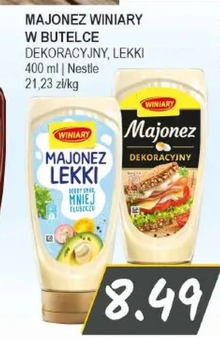 MAJONEZ WINIARY W BUTELCE DEKORACYJNY, LEKKI 400 ml | Nestle 21,23 zł/kg