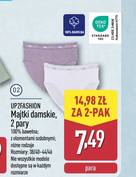 UP2FASHION Majtki damskie, 2 pary 100% bawełna; z elementami ozdobnymi; różne rodzaje Rozmiary: 38/40-44/46 Nie wszystkie modele dostępne są w każdym rozmiarze