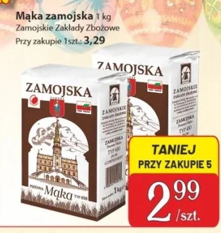 Mąka zamojska 1 kg Zamojskie Zakłady Zbożowe Przy zakupie 1 szt.: 3,29 Taniej przy zakupie 5 sztuk - 2.99 zł/szt. Mąka zamojska o wadze 1 kg pochodzi od Zamojskich Zakładów Zbożowych i jest dostępna w ofercie PSS Zamość. To uniwersalny składnik do wypieku chleba, ciast, ciastek oraz zagęszczania zup i sosów. Sprawdź aktualną ofertę w gazetce PSS Zamość, aby dowiedzieć się więcej o opłacalnych zakupach większych ilości. Produkt idealnie sprawdzi się w każdej kuchni.