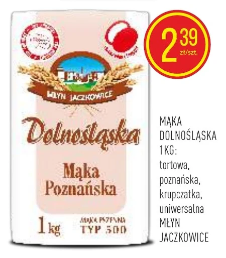 MĄKA DOLNOŚLĄSKA 1KG: tortowa, poznańska, krupczatka, uniwersalna MŁYN JACZKOWICE