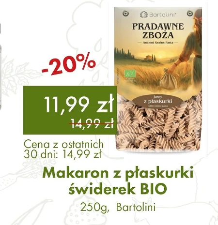Makaron z płaskurki świderek BIO 250g, Bartolini