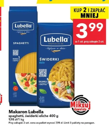 Makaron Lubella spaghetti, świderki eliche 400 g