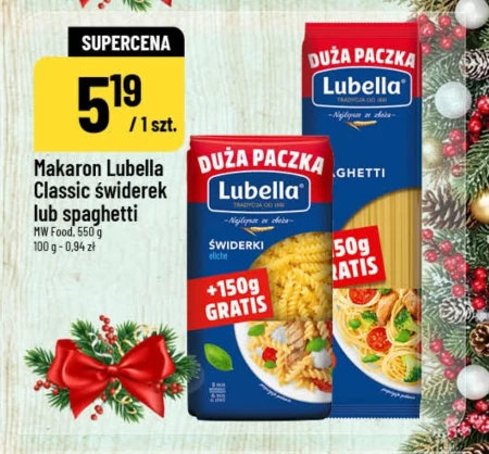 Makaron Lubella Classic świderek lub spaghetti MW Food, 550 g 100 g - 0,94 zł
