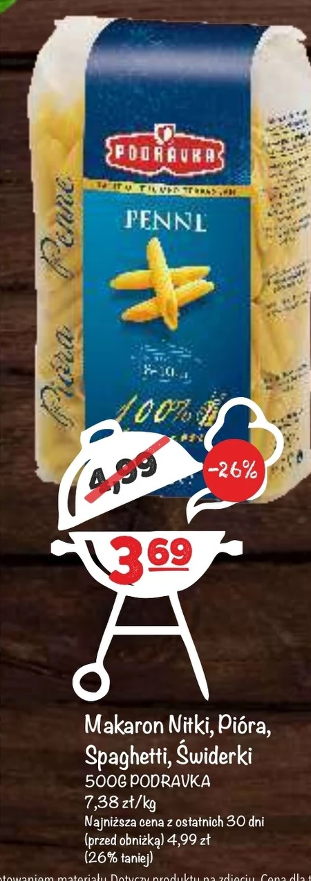 Makaroni Ntiki, Pjora, Spaghetti, Świderki 500G PODRAUKA 7,38 zł/kg Najniższa cena z ostatnich 30 dni (przed obniżką): 4,99 zł przekreślona (2,6 % taniej)