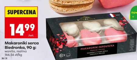 Makaroniki serca Biedronka, 90 g: wanilia, malina 166,56 zł/kg