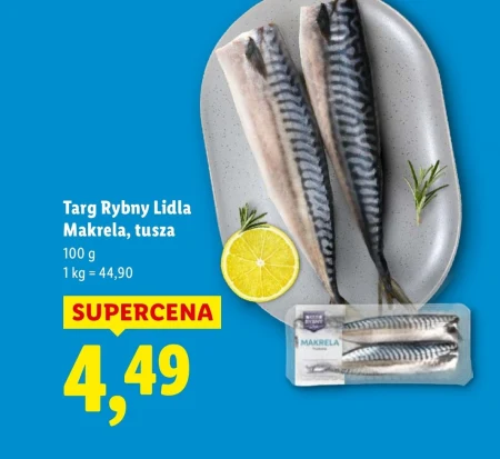Targ Rybny Lidla Makrela, tusza 100 g 1 kg = 44,90