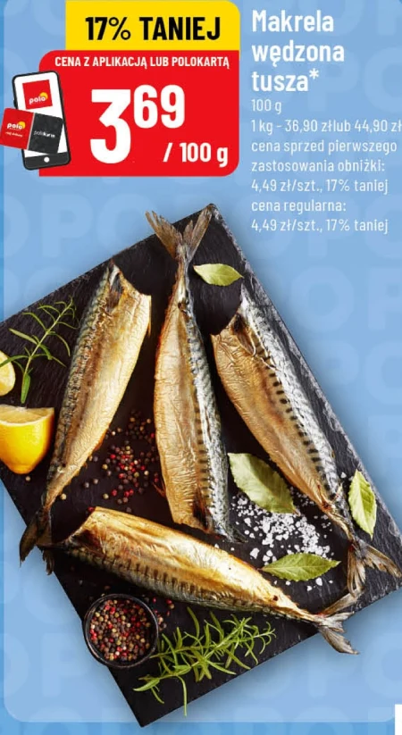 Makrela wędzona tusza występuje w ofercie POLOmarket w cenie 1 kg - 36,90 zł lub 44,90 zł, a pojedyncza sztuka o wadze 100 g jest teraz dostępna 17% taniej, za 3,69 zł. Ten smaczny i delikatny produkt to doskonały wybór na szybki obiad lub przekąskę. Wędzona makrela jest bogata w kwasy omega-3 i stanowi cenne źródło białka, idealnie sprawdzi się zarówno na kanapkach, jak i jako element większej kompozycji smakowej. Skorzystaj z obniżki ceny i spróbuj tego wyjątkowego przysmaku już dziś. Oferta ważna od 2026-04-15 do 2026-04-21 Źródło: gazetka POLOmarket