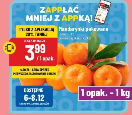 Mandarynki pakowane 1 opak. - 1 kg cena bez aplikacji: 4,99 zł