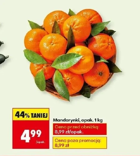 Mandarynki, opak. 1 kg Cena przed obniżką: 8,99 zł/opak. Cena poza promocją: 8,99 zł