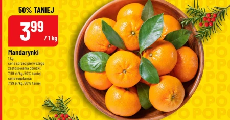 Mandarynki 1 kg cena sprzed pierwszego zastosowania obniżki: 7,99 zł/kg, 50% taniej cena regularna: 7,99 zł/kg, 50% taniej