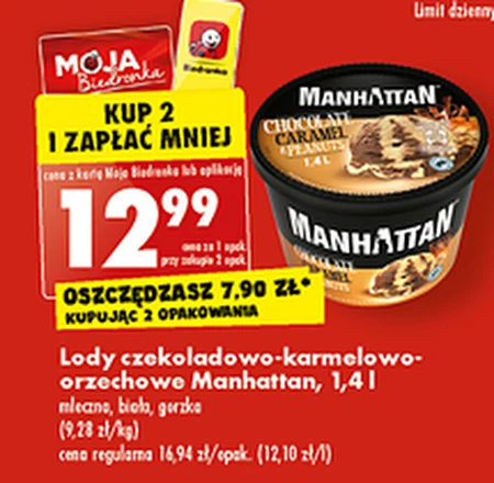 Manhattan Lody czekoladowo-karmelowe z siekanymi prażonymi orzeszkami ziemnymi 1400 ml - Oferta archiwalna