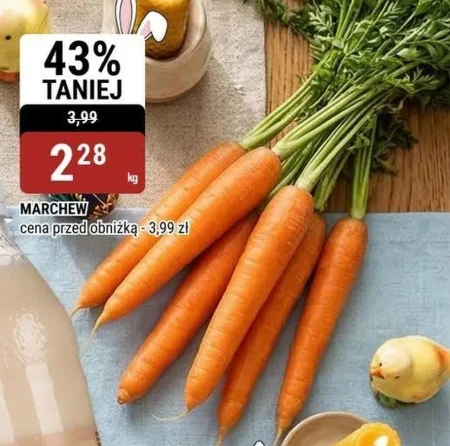 Marchew w Bi1 dostępna jest teraz w cenie 2,28 zł za kilogram, po obniżce z 3,99 zł, co stanowi aż 43% taniej. To idealny składnik do zup, surówek, czy po prostu zdrowa przekąska. Warzywo jest świeże i gotowe do wykorzystania w codziennym gotowaniu. Skorzystaj z tej okazji i zaopatrz się w marchew w atrakcyjnej cenie, zanim promocja się skończy.