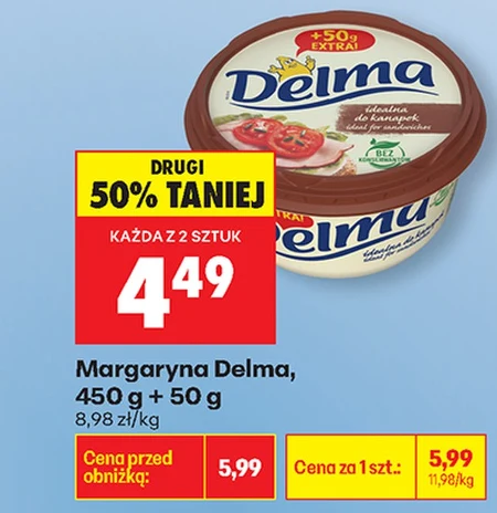 Margaryna Delma, 450 g + 50 g 8,98 zł/kg