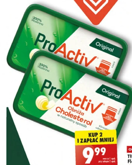 - Naturalna siła steroli roślinnych, które skutecznie obniżają cholesterol we krwi - Zawiera niezbędne kwasy tłuszczowe Omega 3 i Omega 6 - Odpowiednia dla wegan. Udowodnione klinicznie - sterole roślinne Jak działają sterole roślinne Mają zdolność ograniczania wchłaniania cholesterolu z jelit do krwiobiegu, zmniejszając w ten sposób poziom cholesterolu we krwi. Codzienne spożywanie 1,5-3 g steroli roślinnych pozwala obniżać cholesterol. Jedna porcja Flory ProActiv (10 g) zawiera 0,66 g steroli roślinnych. Dzienna porcja (30 g, czyli ilość wystarczająca na posmarowanie 3-4 kromek pieczywa) zawiera 1,98 g steroli roślinnych. Ważny jest zdrowy tryb życia oraz zrównoważony i różnorodny sposób żywienia, uwzględniający konsumpcję warzyw i owoców, w celu utrzymania poziomów karotenoidów. Wysoki poziom cholesterolu jest czynnikiem ryzyka rozwoju choroby wieńcowej serca. Istnieje wiele czynników choroby wieńcowej serca. Zmiana jednego z nich, nie daje gwarancji obniżenia ryzyka zachorowania.