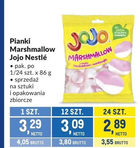 Pianki Marshmallow Jojo Nestlé · pak. po 1/24 szt. x 86 g · sprzedaż na sztuki i opakowania zbiorcze